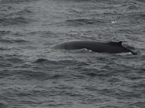 Report from Eldey: We headed out into the bay on a quiet sea and with little wind. It didn´t take us long to reach an area where a large flock of seabirds were feeding. Together with some elusive harbour porpoises they were obvious signs of a large school of fish surrounding the boat. Hoping that a whale will soon join the feast we very soon spotted a blow a kilometer ahead of our boat. The closer we would get to the site of the blow the higher the number of seabirds and porpoises was. In the middle of the frenzy a large humpback whale soon surfaced. The animal was quickly followed by the brief appearance of a smaller minke whale, but this individual was very elusive and most of the passengers didn´t see it. However the humpback whale was obviously not bothered by us, foraging around us for almost an hour it would sometimes surface very close to the boat. Porpoises tried to steal the show several times by showing up very often next to the large humpback whale or the boat. When we finally had to come back to Reykjavík the whale was still quietly feeding.