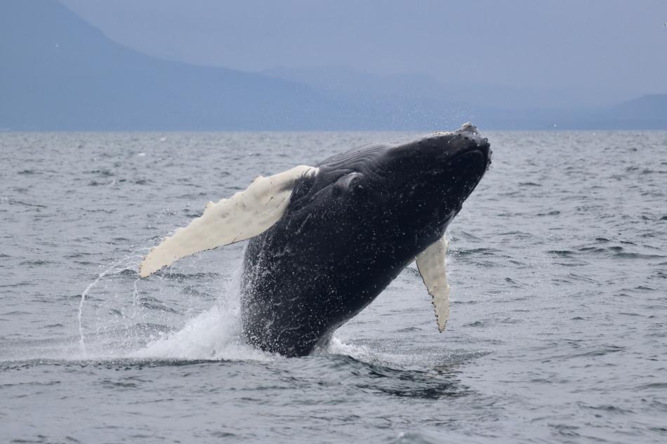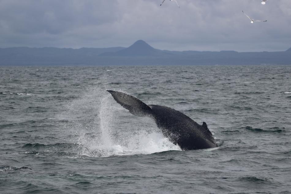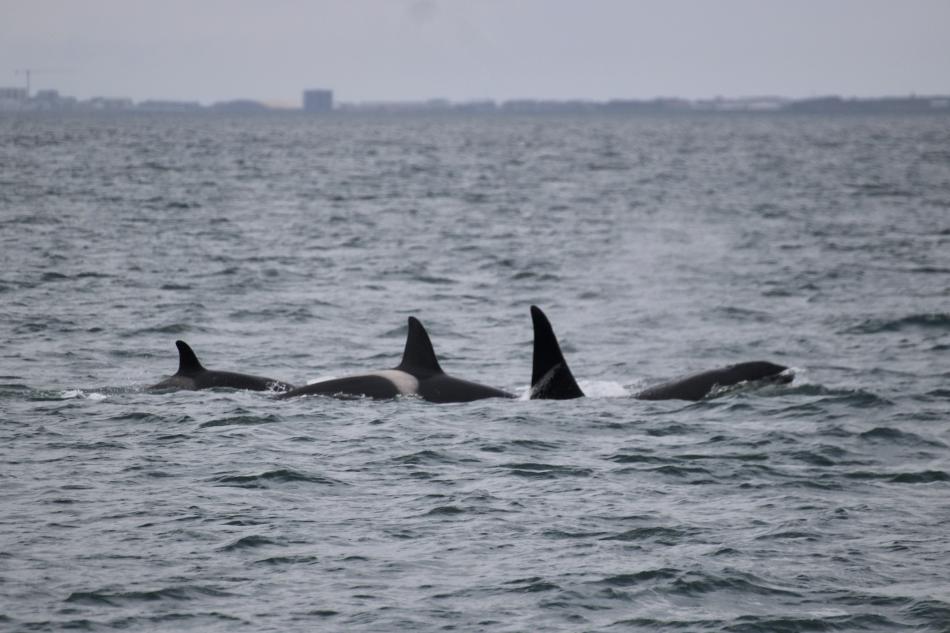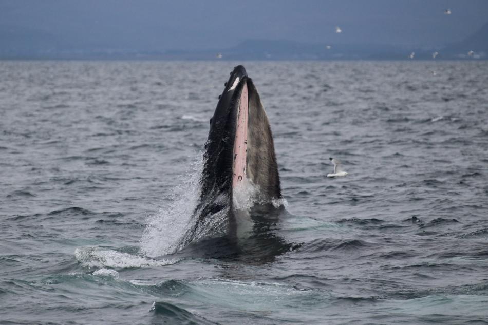 Report from Hafsulán: Today we had an amazing tour despite the light rain. A few minutes after leaving the harbour we saw a pod of 6 orcas or killer whales. They were very close to the islands just outside of the city, and we were able to have a good view of them before going further onto the bay. We spotted some minke whales on our way but we didn't stop since we saw a big blow ahead of us. When we got there, we realized that there was not only one but 2 humpback whales together, probably a mother and a calf due to the big difference in size. We enjoyed very much our time with them while they were having lunch. Every time they were going to surface, we already knew where they were going to be because of all the birds following them. There were also some white beaked dolphins that joined the feast for a while. It was a really beautiful tour that all of us will remember.