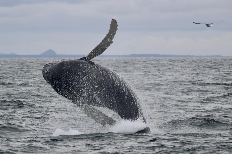 The Humpback Whale is quite spectacular undergoing the longest migration of any mammal (5176miles/8334km one way), attracting females by singing to them and of course their energetic nature. On many occasions humpbacks have been seen breaching, tail slapping, fin slapping, blowing bubbles and spy hopping just to mention a few. The humpback is also one of the larger whales we encounter