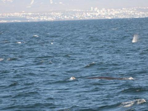 Tour at 13:00Report from Hafsúlan: It was still quite windy as we headed out but the sun was shining. We sailed for about 40 minutes before we spotted the first blow from a Minke Whale. The animal was moving quite fast, took frequent deep dives and surfaced in a totally different area. We got a good look at the minke but it was hard to keep up with the animal so we decided to head further out and see if we would find something more. After only 10 minutes a pod of 4-6 Harbour Porpoises was spotted next to the boat. As we were trying to get a good look at them another minke whale surfaced right behind us. We managed to see that minke whale for a couple of times before it disappeared. After some search another minke whale was spotted, we got a beautiful look at the animal as it surfaced right in front of the boat and seemed to be feeding as there were a lot of birds diving down around the minke. We also spotted a few more pods of harbour porpoises, and actually got a great look at these small and shy cetaceans. It was a fun tour with around 3-4 minke whales and loads of harbour porpoises, along with some very interesting marine birds. The sail was a bit choppy and some could say that we had true Icelandic adventure, with some choppy waves and a lot of whales. -Freydís ÓskTour at 09:00
