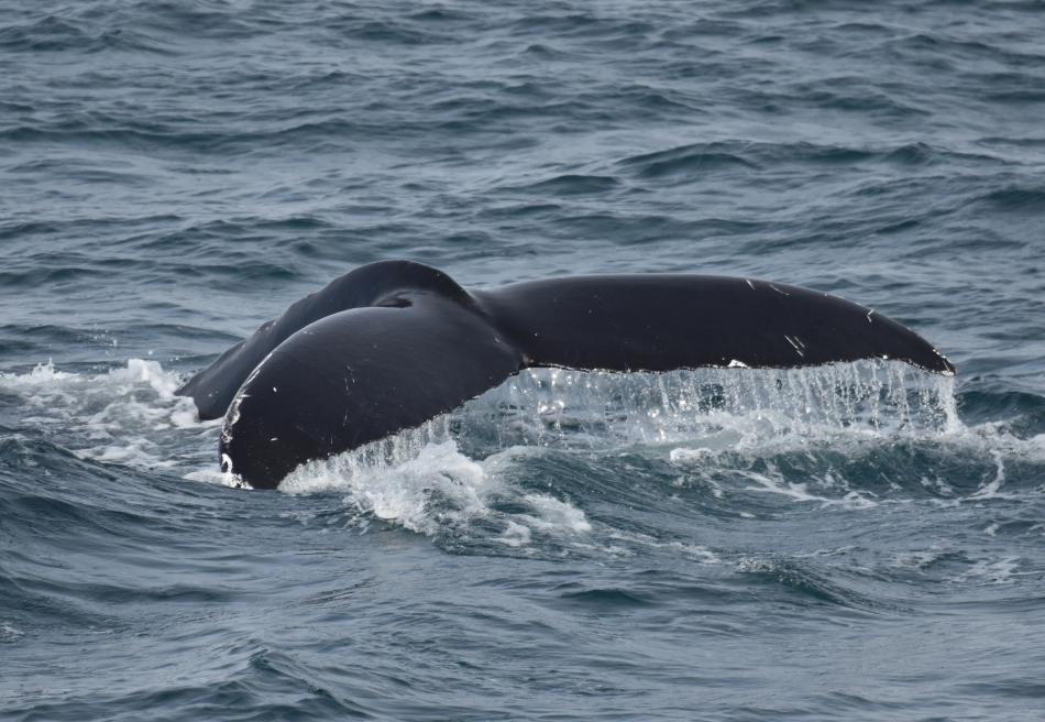 Report from Eldey: This afternoon we once again set sail into our favourite bay, the ocean was even calmer and the wind nearly still! Shortly after departure we found a very friendly minke whale! This one came up very close to us quite a few times and quite close as well. We ended up seeing another minke, this one was more elusive than the first. Then we were joined by 4-5 harbour porpoises. This was a very cute encounter as they are often quite shy, but they stayed with us for quite some time. After they left, we saw even more minkes and then found a small pod 4 white beaked dolphins! These travelled along side us for some time, and again came incredibly close - we were clearly being spoilt during this tour! And if that wasn't enough we then heard a rumour of a larger cetacean further out...We headed to the spot and surely enough saw a humpback whale! This one fluked behind the boat! We then waited a little bit longer to see it once more before we had to head back!