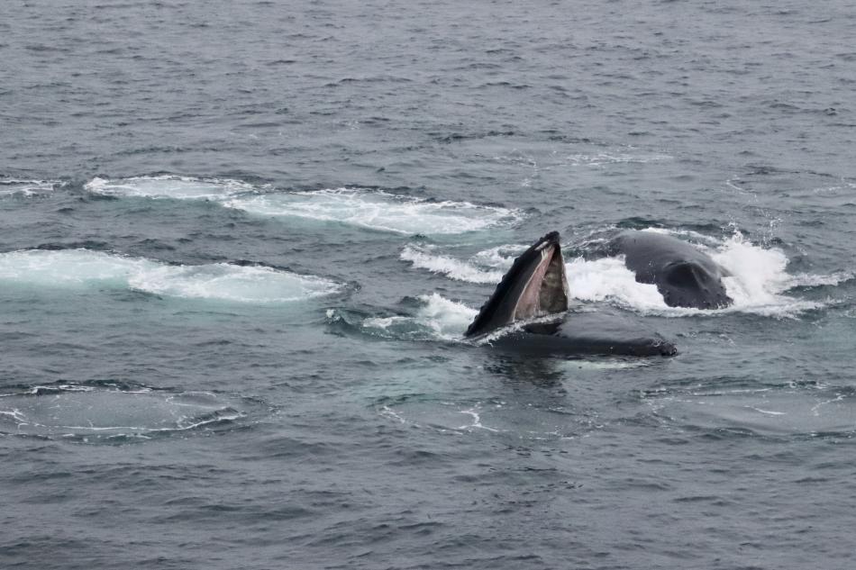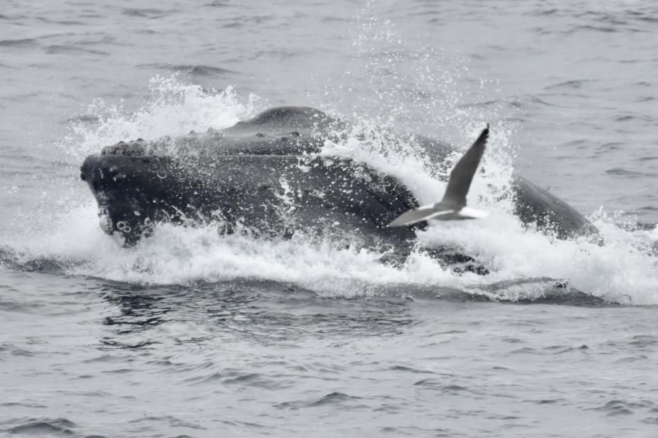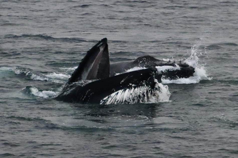 Report from Eldey: We headed out onto a flat bay under the setting sun peaking through the clouds. We first came across an area with at least 7 minke whales popping up around us. After a lovely couple minutes, we continued on, heading deep into the bay, in hopes of finding some less shy species or individuals. It took us quite a while, but our patience and determination paid off, as we stumbled onto an absolute feeding frenzy! With at least 8 humpback whales around us, we turned our focus to the 2 pairs closest to us. We were treated to some amazing lunges at the surface as well as multiple demonstrations of bubble-net feeding! 2 rather shy white-beaked dolphins also made a brief appearance, but the humpbacks definitely stole the spotlight. As we were turning to head back, the whales decided to give us a fitting finale to the evening, the 2 pairs merging into a 4-membered group, performing a synchronized lunge! What an incredible tour!