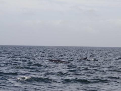 (Report from Elding) The wind had picked up alot on this tour and the boat rocked quite a bit which was a lot of fun but had to be careful on the way back because you might of got wet from the seaspray so everyone was warned to move inside the warmer saloon. The seabirds and whales loved it too as the swells (rolling waves that don´t break) allowed them to surf too conserve energy whilst feeding or just for fun and the wind gave the birds a strong air current to glide on. Must of seen at least 6-10 Minkes on this tour and three surfaced at once just meters from each other, two going one way the third going the other. We also saw them doing the bubble feeding behaviour, where they blow air out of their blowholes under water which is meant to confuse the fish making them easier to catch. Gannets were also plunge diving just a meter or two from the boat and kleptoparasitic Skuas stealing fish. Great afternoon.