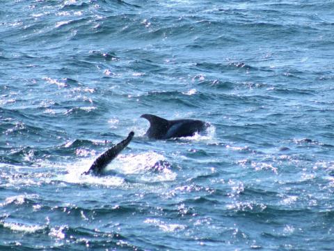 Report from Eldey: After few days stuck on land, we finally sailed out from Hafnafjordur to explore the wonders of Faxafloi. We faced a fierce wind blowing from the south but once we headed towards Reykjavik we sailed smoothly with the waves. We got nice views from tons of seabirds but the show was reserved for a pod of 4-5 white-beaked dolphins that surfaced out of nowhere. For our surprise, they were following a juvenile humpback whale. She seemed to be a bit upset raising her tail but we got very lucky to see this kind of interaction between two different species of cetaceans.