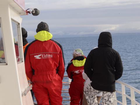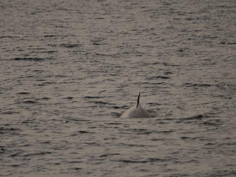Report from Hafsúlan: The wind had picked up a bit since the morning tour and some rain showers passed over us. We headed straight for the area where we left the humpback whale this morning, but it was nowhere to be seen. We continued out in Faxafloí bay and after a while some of our passengers spotted something infront of the boat. It turned out to be a single white-beaked dolphin, it didn´t surface again infront of the boat instead we found it jumping in the swells behind the boat! A few jumps out of the water and then the dolphin continued traveling away from us. We headed further out in the bay and came to an area with feeding birds. A minke whale was seen surfacing twice in the distance but unfortenatly most of our passenger missed it. A pod of white-beaked dolphins were feeding underneath a flock of birds and gave us very nice views! On the journey home we got a call from another whale watching boat about a minke whale, but when we arrived the minke was gone. Instead 2-3 harbour porpoises had to end this tour, as we were running out of time.