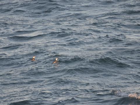 Report from Hafsúlan: The bay was beautiful this morning, little wind and small waves. The visibility was amazing, the sky was clear and the sun was still rising up giving the mountains around us glowing red colour. Throughout the tour we could spot few flocks of feeding birds and we always went towards them to see if we could find any cetaceans near them. Flocks of feeding sea birds can often be a good sign of a lot of fish and where there is a lot of fish there are more chances to find cetaceans. But unfortunately we were not able to spot any cetaceans on this tour. All of our passengers were offered complimentary tickets that they can use to get on another tour with us sometime within two years.