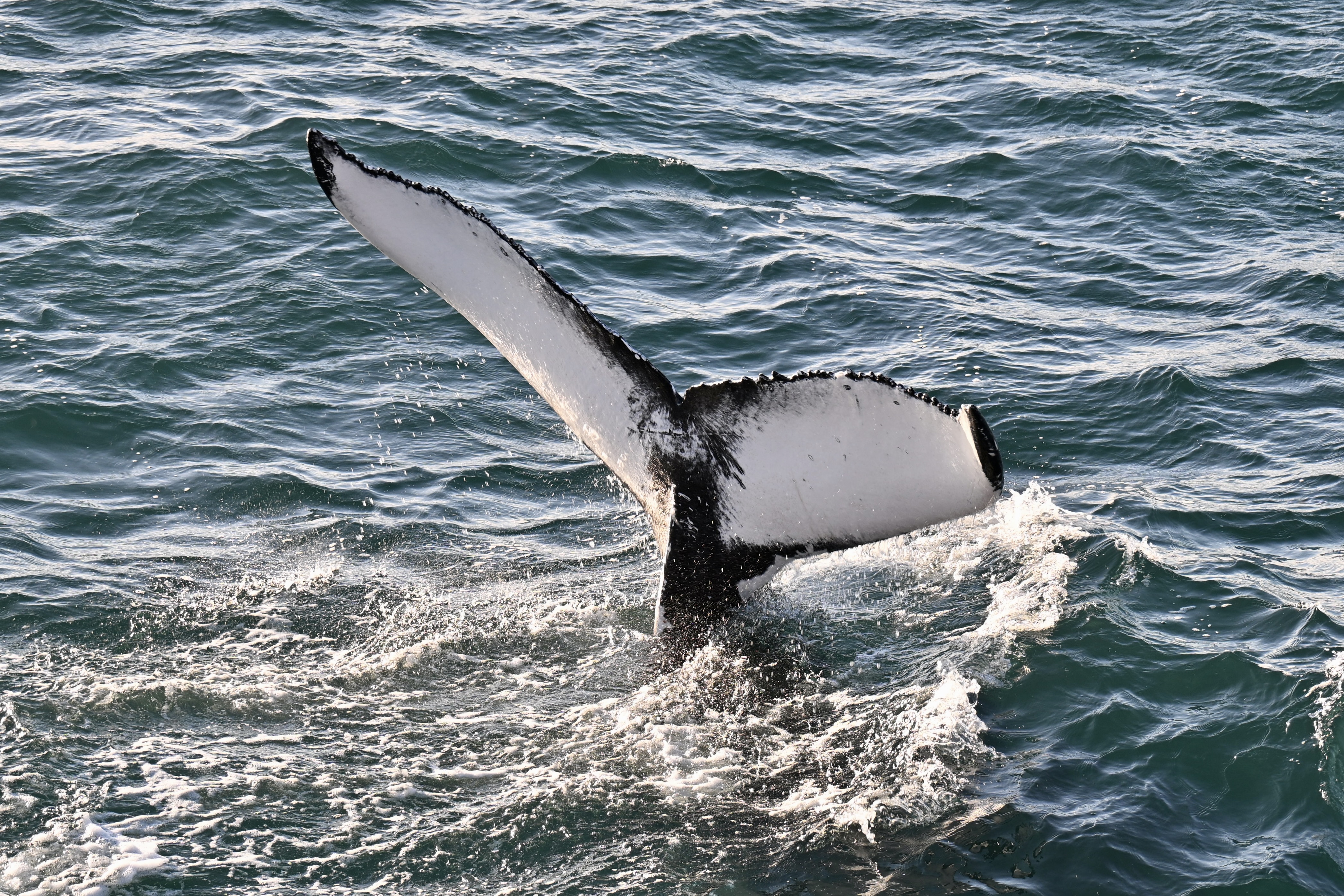 Report from Hafsulan: With sunny, clear skies, we set sail out into the bay. It was such a picturesque scene with the fresh snow on the mountains and islands around us. It was not too long until we spotted the blows of two humpback whales!! This instantly treated us to a double fluke dive which was amazing to witness. When they resurfaced, they were right next to our boat! We could see their entire bodies through the surface of the water, it was amazing. After multiple surface sequences, they then gave us another double fluke dive, right next to the boat! When they surfaced again we could even see their white pectoral fins as they swam through the waves ahead of us. The cold made it really easy to spot the blows as our pair resurfaced, as the colder it is the more prominent the cloud above our cetaceans heads get. After another incredible fluke dive, we continued onward to see who else was around. Although there were many birds about, we did not spot any other cetacean. Thus, we popped back to say hello and see a few more surface sequences, before heading back to port. On the way back we had a quick appearance from two harbor porpoises. After two surfaces, they swam onward and so we continued back home. We had another great afternoon on the bay.