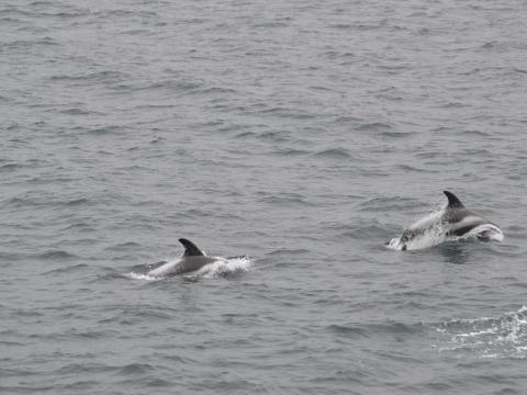 Report from Eldey: We started this tour with half of the sky blue, but as it always happens here, it didn't last long. With the sun completely gone under the thick cloud cover, we learned a new definition of the word "cold". We had sailed about 7nm out when our captain saw some fins slashing the water surface. It was a small pod of white-beaked dolphins with maybe 4-5 members. We stayed with the pod for some time and allowed for them to come close to us as well. Wit the sea state not being the calmest it was somewhat difficult to photograph the busy dolphins that on this tour seemed to hold a steady distance from the ship, but still breaking that "rule" a couple of times, enough for us to get a decent look at these intelligent marine mammals. We had slowly run out of time and it was time to return to port. Winter has really started; I know this because as a guide it never happened before that I took an extra blanket with me up in the crow nest, but it did today :)