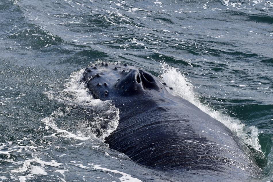 Report from Eldey: We sailed under calm seas and cloudy skies straight towards the open waters. After cruising for a while, we reached a one mile stretch of water where we encountered at least 8 to 9 humpback whales. We spent the the entire trip in that area, surrounded by these magnificent animals. It was an incredible experience from their fluke dives to the peaceful atmosphere and stunning scenery.