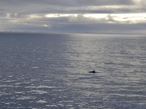 Report from Eldey: We sailed out with the golden arms of the sun still caressing our faces. It would be great if it lasted. And it did to for a long time. An hour out in the sea and our captain spotted the first larger animal in the bay. It was a blow of a minke whale in front of us, 400 m away. Upon decreasing the distance between us we could see that it was a younger individual that was very curious about us. It came with it's head out of the water a couple of times and also "showed" the lateral side of it's body to us on the left and right side of the boat. It was a nice interaction and it was time to leave this individual alone. After continuing the trip further we were very soon in the company of white-beaked dolphins. It's hard to say how many there were, since they were scattered over a large surface area, but I would say that there were at least 20 of them. With the surreal lightning of the setting sun barely hiding behind the cumulonimbus; it was a special treat to observe the cheerful dolphins. What a tour. :)