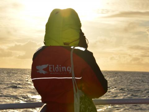 Report from Eldey: It was a beautiful but cold afternoon on the bay. Easterly winds meant that we felt the most of it on the way home. Plenty types of birds joined us on our tour including numerous sooty shearwaters, a lot more we have seen this year to previous years, a stunning bird to watch gliding on the strong air currents. Very graceful. Amongst a flock of these a pod of 5-7 harbour porpoises were seen surfacing fast in the suns glare, rays picking up on the splashes as they came up to breath. They go by so fast so its always hard to track them. We left and after a while longer we found a pod of 3-4 white-beaked dolphins. Everyone got a chance to see them but they were also difficult, frequently changing direction. Had to be concentrating well to keep up with them. However, they too just disappeared and so we traveled home, enjoying the landscape as we did so.