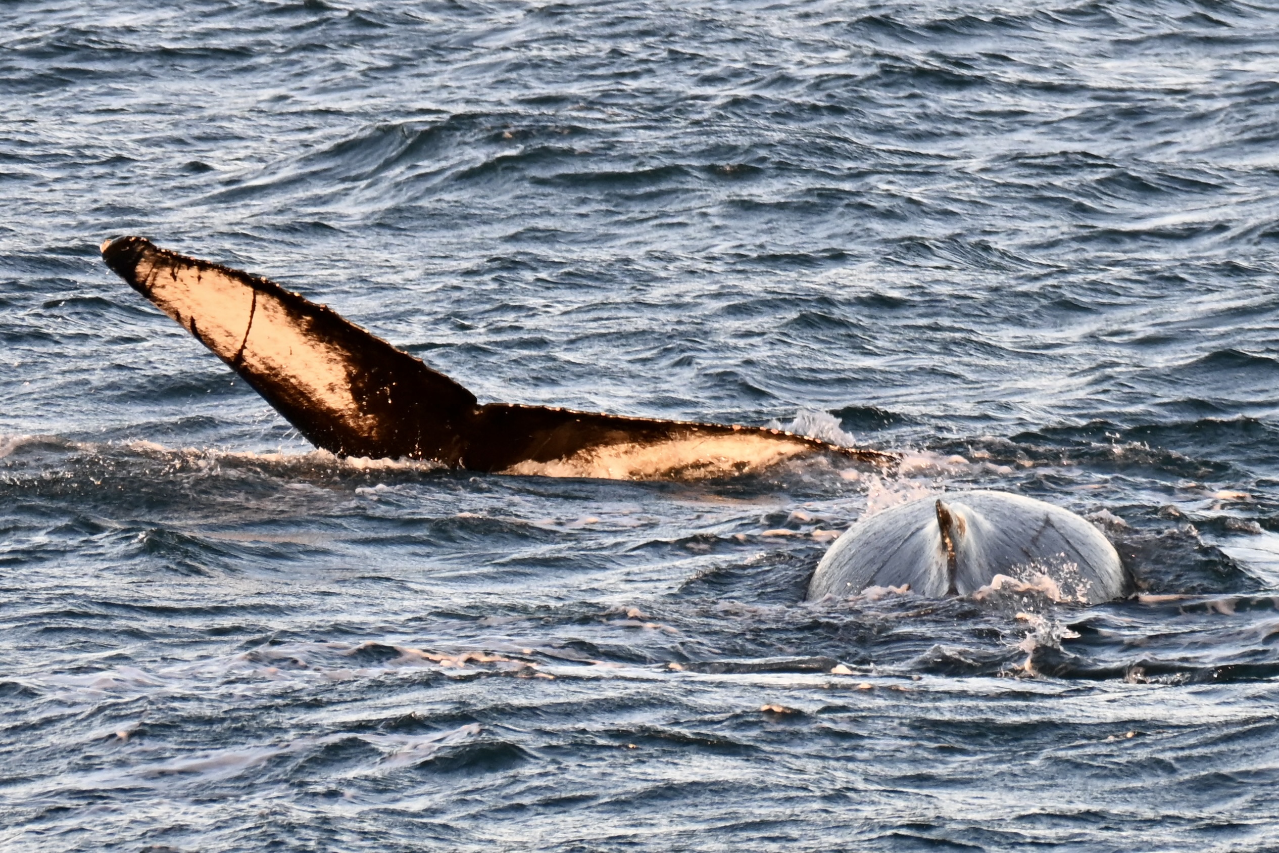 Report from Eldey: With the sun casting a pink glow over the skyline, we bundled up and set sail. Just as we were pulling out of the harbor, we spotted the blow of one humpback whale! This individual was showing just how quick humpbacks can be when they feed. It was surfacing all around the boat, keeping us on our toes. After multiple surfaces, we decided to see if anyone else was around. As we sailed around, we admired the bird life, as some Northern gannets were soaring around us. After a little sail, we then spotted two blows and went to investigate! We had found the pair of humpbacks that have been wintering nearby, Banana and Radar! They treated us to multiple double fluke dives, showing off their unique fluke prints. They then decided to check us out, as they surfaced right next to us! It was amazing to see their bodies through the water and hear them as they surfaced for a breath. After a wonderful encounter, we waved them goodbye and went to visit the first solitary humpback again. This individual was still feeding and started to do a bit of lunge-feeding. It was impressive to see them engulf a mouthful of fish. After multiple surface sequences, this humpback was off and it was time to head back to port. With the sun shining and three humpback whales, we had a great afternoon!