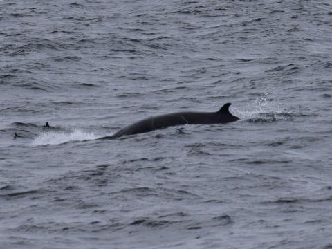 Report from Eldey: Cold winds coming from the north were gusting in our faces and we had swell. Nonetheless we had quite a tour! We spotted a minke whale from a good 1km distance and once we got into the area where we had seen it, we found ourselves surrounded by birds and had minke whales in all directons. After only a short time we had already spotted 4 and got a good look at 2 of them, surfacing close by several times. But we also kept seeing a blow that was unlike that of a minke whale - and sure enough, after a thorough search we found a humpback whale as well as 2 more minke whales! The humpback even did a timelapsed dive, showing everyone watching it's fluke.  If that wasn't worth standing outside in the wind for, I don't know what would be.