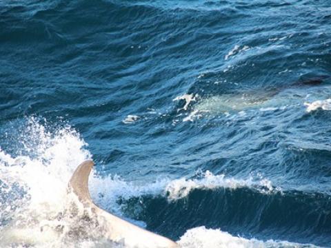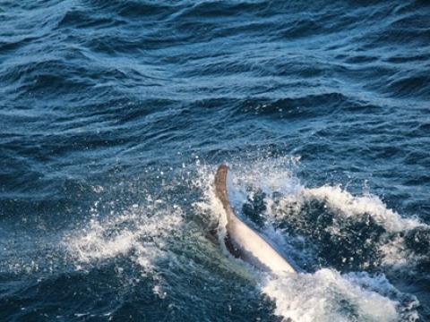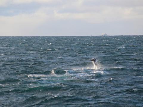 Tour at 10:00 Report from Hafsúlan: We sailed out again from Grindavík this morning, since the sea condition where better on that side of Reykjanes peninsula. Our hopes were high for this tour like they always are when we go from Grindavík. So out we went, all very well dress up in the overalls that Elding Whale Watching provides for guests so there was no need to feel cold despite the chilly wind! We only searched for a little while when we started to see big splashes over and over again in the distance. These turned out to be very, very playful White Beaked Dolphins, at least 20-30 individuals or more. We saw them jumping completely out of the water straight in front of us very often, even sometimes many at once. Often they surprised us by coming very close to the boat, swimming under us or surfacing just meters from the boat! After spending a long and eventful time with the dolphins we decided to search other areas. After only few minutes we saw two big blows just in front of the boat! These turned out to be two big and beautiful Humpback Whales! We got to see these Humpbacks very well, they came slowly to the surface and few times we got to see the fluke as well. These Humpbacks were very synchronized in their surfacing, often coming up at the exactly same moment! After this wonderful encounter we were happy to sail back the short distance back to the harbour in Grindavík.