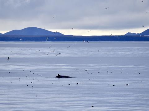 Report from Elding: As our previous tour did not go as planned, we now headed much further south, exploring and searching a different part of Faxabay than before. Waters were calm and the gray sk