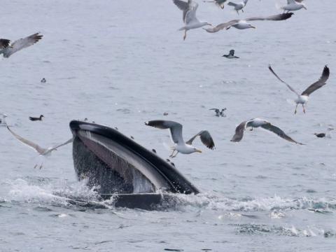 Report from Elding: In the afternoon weather was still calm, light breeze was nicely refreshing as sun was strong. Bay was still full of life and around 50min after departure we started to see so