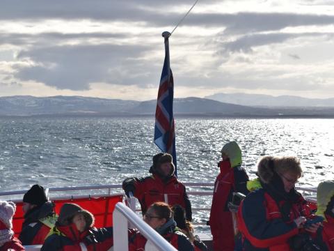 Report from Elding: The sailing was lovely this afternoon, not too much wind and calm sea. It was a bit drizzly through the tour, however, this just meant we could use our overalls to keep us nice and dry. It