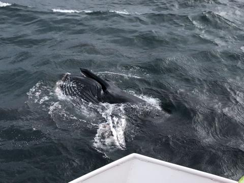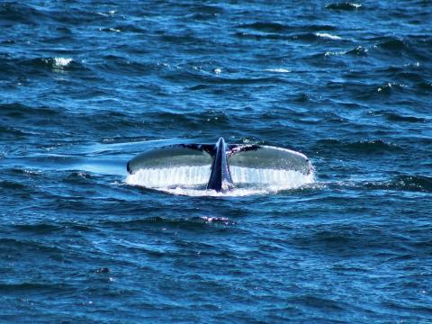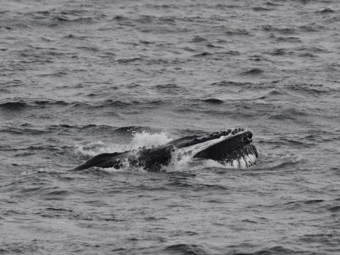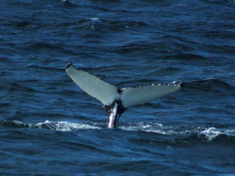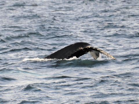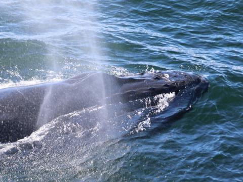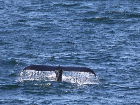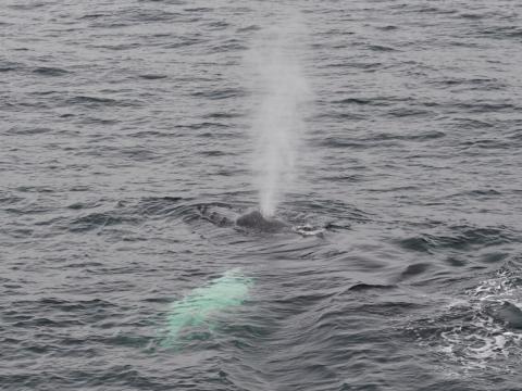With the wind and the sea state calming down, it seemed like a nice continuation of today's whale watching. We sailed out about 45 minutes before we saw the first spout. A lone humpback whale