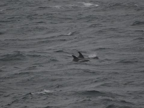 Report from Eldey: The weather was very much the same this afternoon, blustery but a relatively smooth sailing. We tried a new area than this morning, searched more towards the south. We were successful to spot a pod of white-beaked dolphins