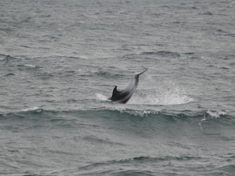 Report from Eldey: It was getting windier and the swells were higher than on the morning tour. We found a pod of 3-4 white beaked dolphins early on the tour. They were difficult to follow and spent a long time under water. After we l