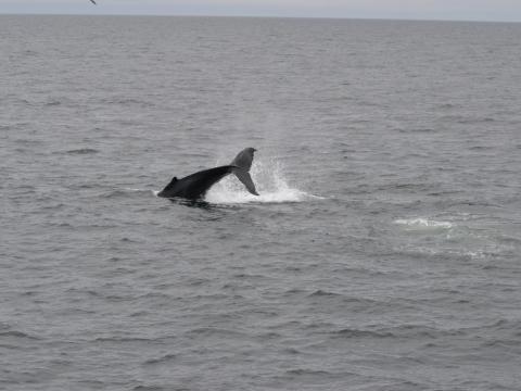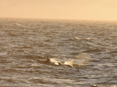 Report from Hafsúlan: This evening tour started similar to the tours earlier in the day, with a pod of white- beaked dolphins. They seemed to be interested in our boat, coming up quiet close, which gave us a very close view at these animal