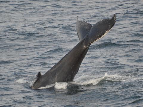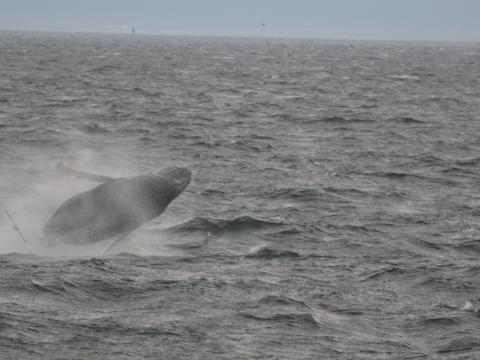 Report from Elding: We decided to make a try to find "Þröstur" the humpback whale that our boat Eldey had rediscovered on the tour at 14:00. So we headed out into the swells again for the third time today. It was bumpy and rocky but t