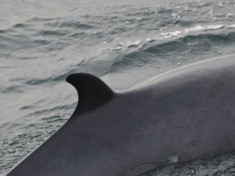 Report from Eldey: the sea conditions were still good but now we had a long rolling swell that rocked our boat a little bit. We didn't need to travel for a long time before finding our first cetaceans, a minke whale. It was easy to follow