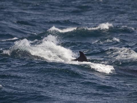 Report from Hafsúlan: The sea conditions had not improved during the day, and so we started our journey by heading north from Reykjavík to get some shelter from the strong winds. The rough sea conditions didn't make it easy to spot cetaceans, and multiple