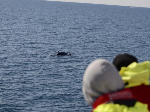 Report from Hafsúlan: Still very excited from the incredible morning tour we went out on our boat Hafsúlan in search of the whales and dolphins sighted earlier. We were hopefully to encounter them again on this sunny afternoon. Not long after we reached th