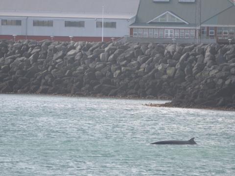 Report from Hafsúlan: We went again out from Keflavík to sail with the swells but this time we ended our tour in Reykjavik. We had only been sailing for few minutes and were still really close to land when we saw a minke whale