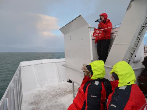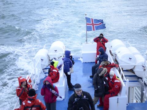 Report from Hafsúlan:There was strong winds today, which will turning into a storm this evening. We sailed out from and back to Hafnafjörður to gain as much shelter from the land as possible. We were luckier today than the last week because we encountered two lovely pods