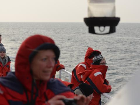 Report from Hafsúlan: The wind turned to the north but it felt calmer as we found a sheltered area behind mount Akrafjall as we were sailing along the coast towards Akranes. There were still some birds to be seen and some of them accompanied us for a while flying in the air