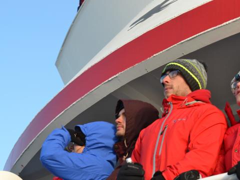 Tour at 17:00Report from Hafsúlan: this time we sailed to the west instead of going straight out. We had excellent view of Seltjarnarnes and the Grótta lighthouse before turning out into the bay. The wind was stronger than it had been during the day and there was bad visibility, we could barely