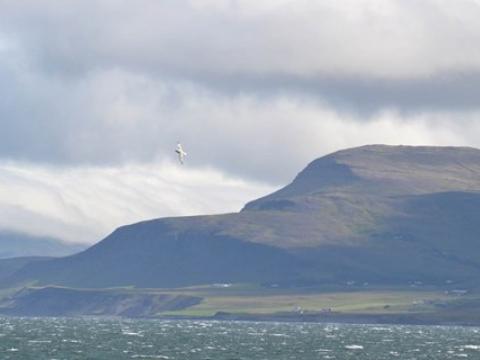 Report from Hafsúlan: The wind had picked up steadily this evening as we sailed along Faxa Bay's southern coast. We began our search by Kjalarnes and continued past Hvalfjörður and up to Akranes. On our way we saw quite a few northern Gannets and even a lone harbour porpoise