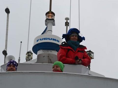 Report from Hafsúlan: The sea conditions got rougher during the day as the swell increased and the wind got stronger too. So we had a roller coaster ride out into the long swell, wave up and down. Then it also started drizzling and later on we sailed under dark clouds of lig
