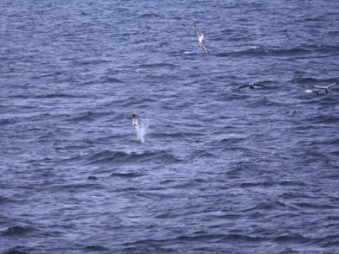 Report from Hafsúlan: It was still quite windy this afternoon as we headed out. We had to sail for a while until we finally found some diving northern gannets. They were apparently feeding and seemed to be plummiting from the skies! Awesome! We did find some two or three min