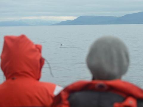 Report from Hafsúlan: The weather this afternoon was much the same as we headed out onto the bay for our last trip of the day. We decided this time around to head further south and begin our search. The wind had picked up slightly by the time we got further out onto the bay