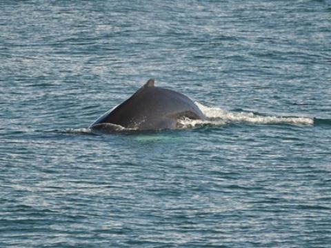 Report from Elding and Hafsúlan: This was a sunny day and there was a lot to see. We sailed out from Reykjavík harbour and it was not far from Grótta lighthouse where we spotted a Humpback Whale. It surfeced close to both boats, and raised it's fluke many times. We observed
