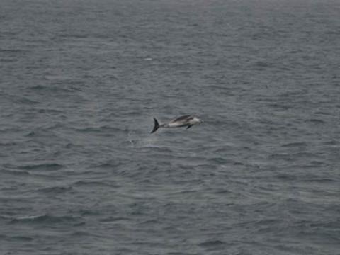 Report from Elding and Elding II: Once again the weather was wonderful, sea conditions best it could get. A slight chilly breeze from the North but warm enough that most passengers didn´t use our free overalls. We sailed west and soon saw lots of splashes, Dolphins! White-be