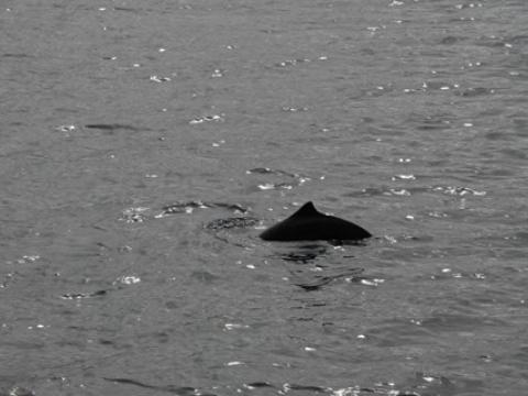 Report from Hafsúlan: The sun was still shining this lovely afternoon. With a full boat we sailed out to the same areas we were this morning. We did not have to wait for long to see small pod of Harbour Porpoises. They were swimming next to us for few seconds before heading