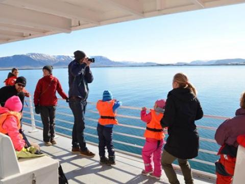Report from Elding: With the sun at our backs we sailed forth from Reykjavík hoping to have another successful tour as the morning had been. When we had been sailing for just over 30 minutes we came across a pod of 10-15 Harbour Porpoise that were actually fun to watch! They