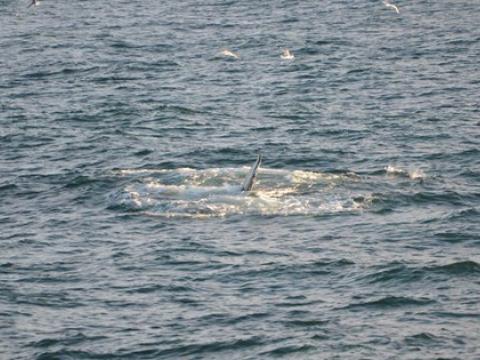 Report from Elding: We sailed out on what seemed to be the calmest and smoothest water ever. It had just finished raining and the sun came out warming everything up and giving us a lovely rainbow. We headed out to sea with a delightful group of passengers eager to see some w