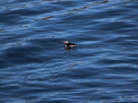 Report from Elding: It seemed very calm as we sailed to the puffin island Akurey where we found many puffins all around the island, standing on it and flying and swimming close to it. After a good start, we headed out on the bay with an optimistic view and spotted a minke wh