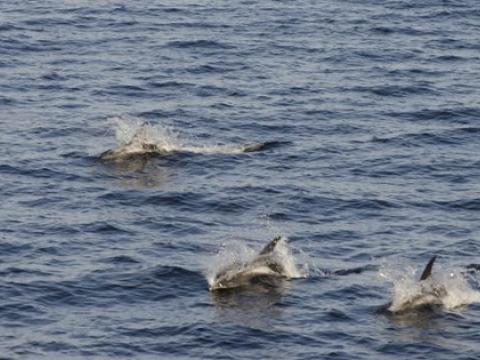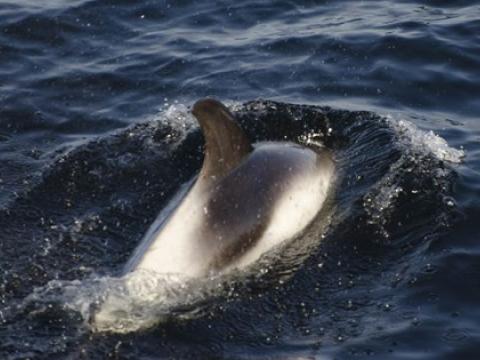 Tour at 13:00 Report from Hafsúlan: Awesome afternoon with 200-300 White beaked Dolphins which were very spread out. A couple of times we could watch the dolphins schooling fish into a tight cluster and hitting the fish with their tails to stun the fish making them easier to catch. After a while