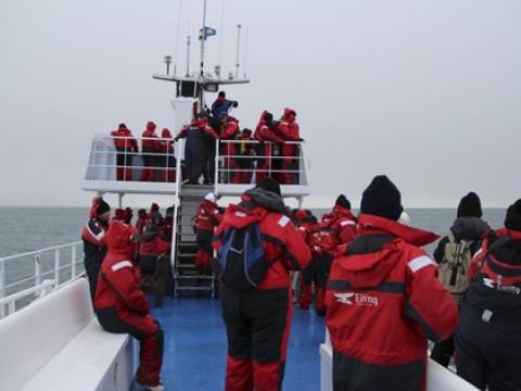 Tour at 13:00 Report from Hafsúlan: We sailed out from Hafnafjörður today as the wind was coming from the South East so we got a lot of protection from the land. We had very smooth sailing for the first half of the tour as we were heading with the swell and wind however, it did get colder and we