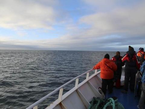 Tour at 13:00 Report from Hafsulan: Today we sailed once again from Hafnafjörður. It was a beautiful day and not very cold at all. We had a very calm sailing for most of the trip but got a little cold and a bit more swell torwards the end. At one point we had the sun rays in one side and an