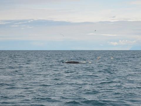 Report from Elding: We had no luck finding whales this evening. There was a decent amounts of birds in the puffin island Akurey and a few birds here and there out on the bay, among them gannets. Apart from that we did not see much life this evening despite keeping a good loo