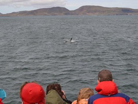 Report from Elding: It was quite windy on this tour but clear blue skies and excellent visibility. We could see the Snæfellsjökull glacier very well and especially towards the end of the tour with the sun almost at the horizon it was beautiful on the Faxaflói bay. However we