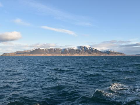Report from Eldey: The morning rain stopped perfectly in time for our afternoon tour! Clouds were still hugging the mountains surrounding us as we sailed out to Faxafloi bay. There was only very little wind and the sun greeted